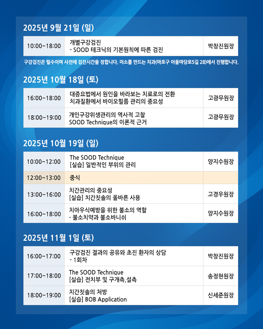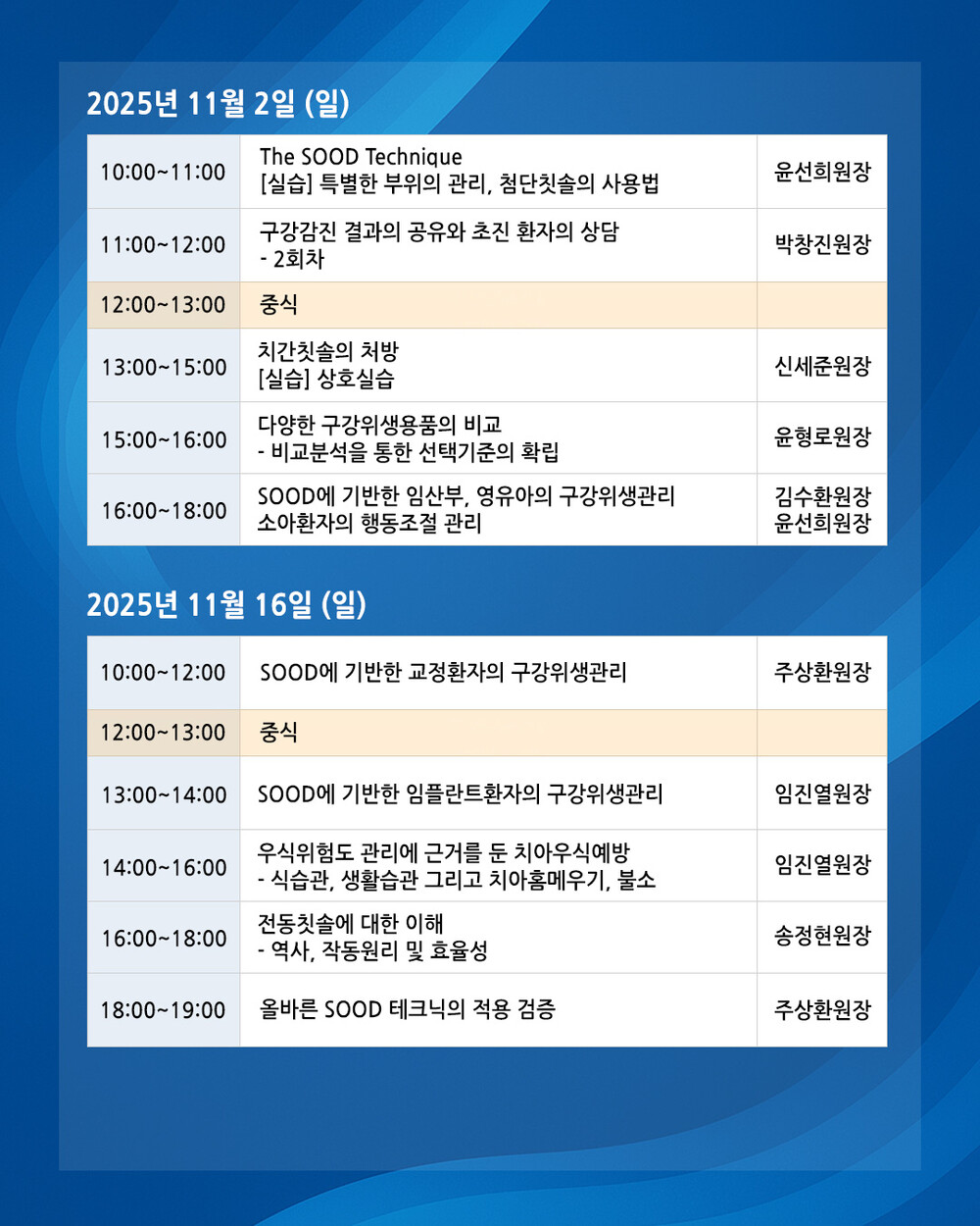 치과의사를 대상으로 하는 SOOD연수회 입니다.